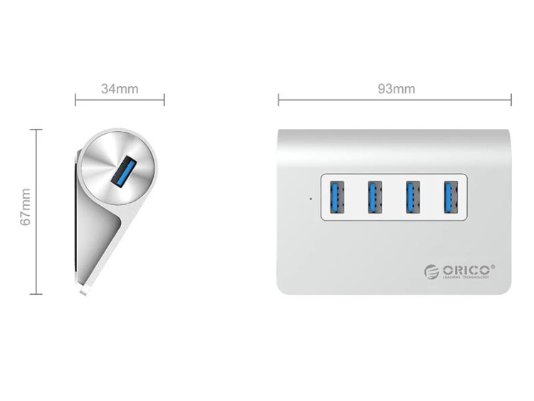 هاب 4 پورت USB 3.0 اوریکو مدل M3H4 که با نام تجاری Orico M3H4 Aluminum Alloy 4 Port USB3.0 HUB در بازار شناخته می شود یکی از تولیدات برند معتبر اوریکو می باشد که علاوه بر هاب قلبلیت استند برای موبایل و تبلت شما را دارا هست . با استفاده از هاب اوریکو شما می توانید پورت های USB محدود روی دستگاه های الکترونیک، لپ تاپ و کامپیوتری که با آن کار می کند را افزایش داده . در هاب 4 پورت اوریکو مدل M3H4 بیشترین سرعت انتقال اطلاعات 5 گیگابیت بر ثانیه توسط رابط USB3.0 می باشد که این مقدار تا 10 برابر، سریع تر از سرعت USB2.0 است. با استفاده از هاب 4 پورت USB 3.0 اوریکو مدل M3H4 هر یک گیگابایت از دیتای مورد نیاز خود را تنها در 3 ثانیه انتقال دهید.