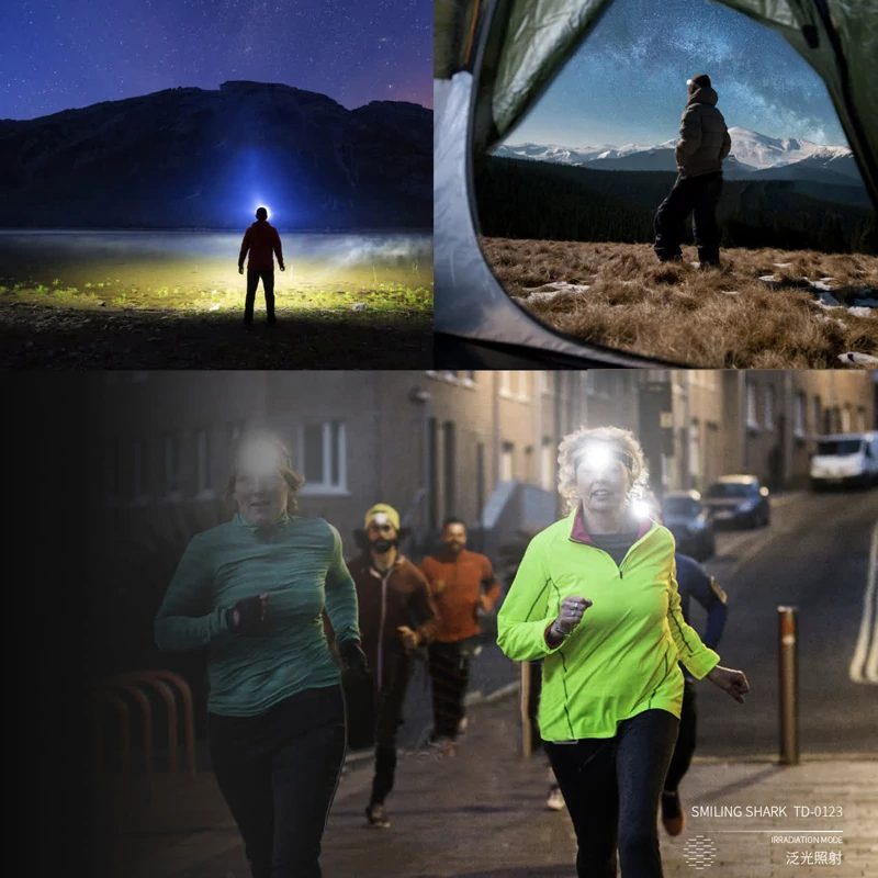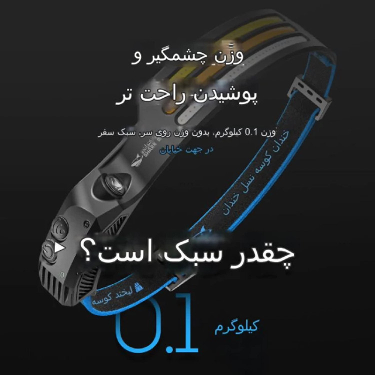 ## چراغ پیشانی شارژی با نوار نور سفید یا قرمز مدل Smiling Shark TD-0123A