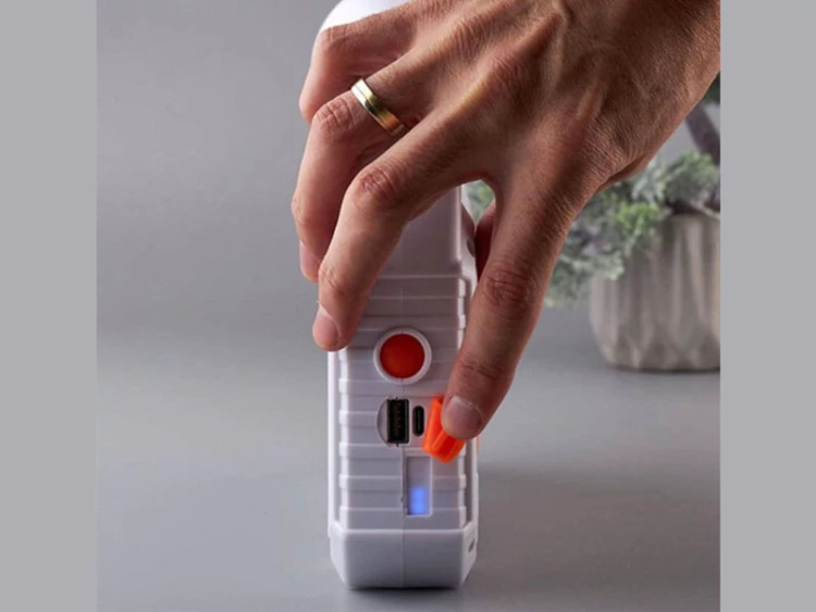 در طراحی این نوافکن یک دسته وجود دارد تا به راحتی بتوانید آن را در دست بگیرید و با خود حمل کنید؛ رنگ سفید با ترکیب رنگ نارنجی جذابیت ظاهری آن را چند برابر کرده است.