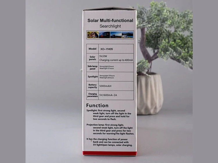 چراغ قوه شارژی دارای پنل خورشیدی ایکس او XO YH05 Solar Multi-Functional Searchlight Lamp