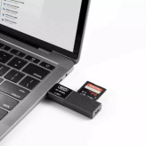 کارت خوان DK05A با طراحی ساده و جمعوجور، حمل و نقل آن را بسیار آسان میکند. این رم ریدر از مواد باکیفیتی ساخته شده و دارای درب شیشهای برای کانکتور USB است. ابعاد این رم ریدر 70 در 18 در 10.5 میلیمتر میباشد.