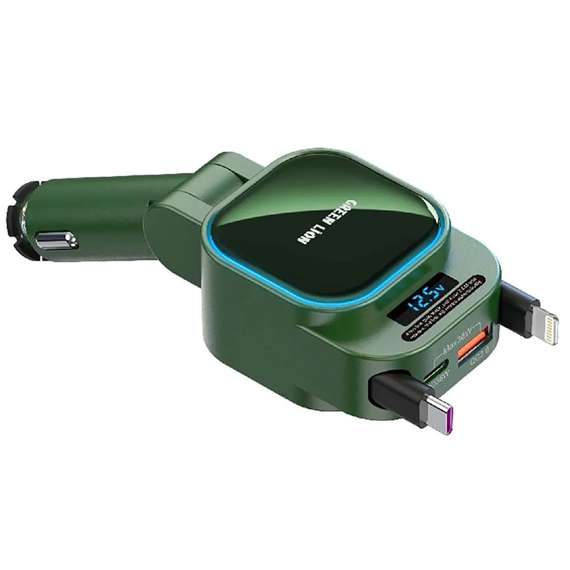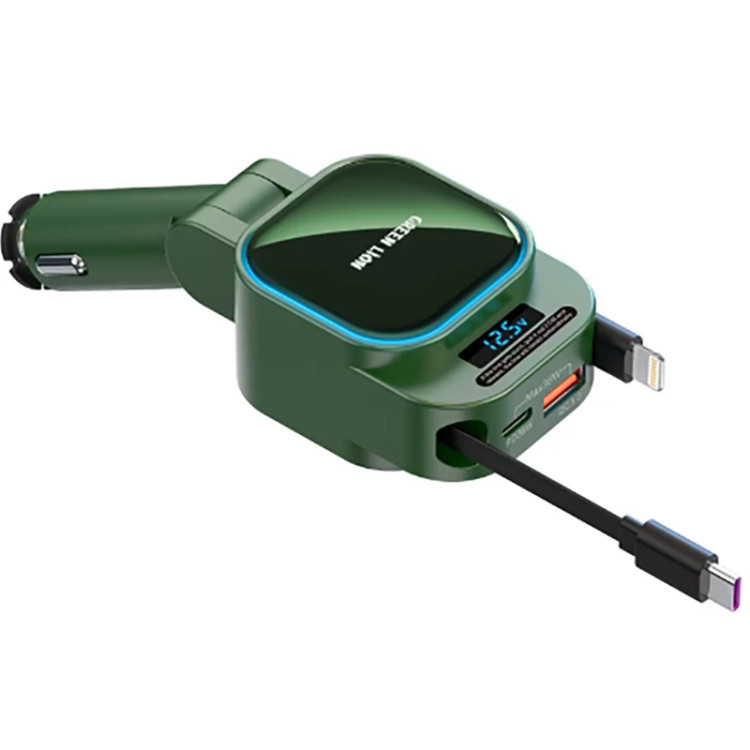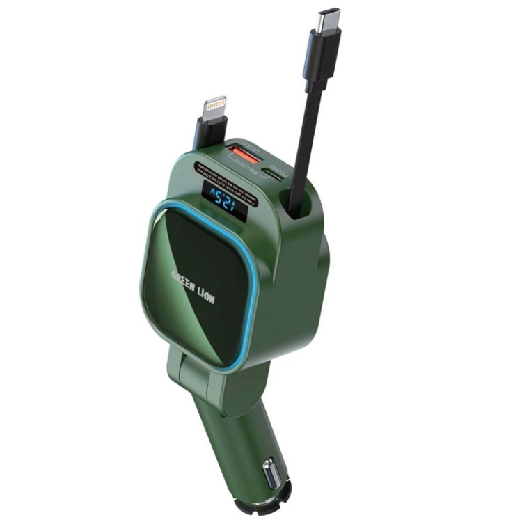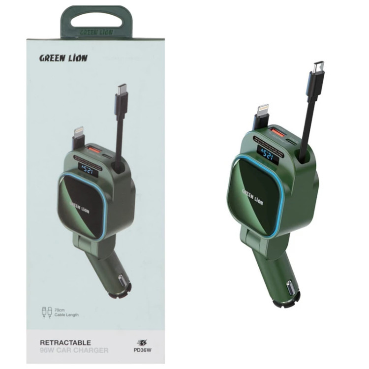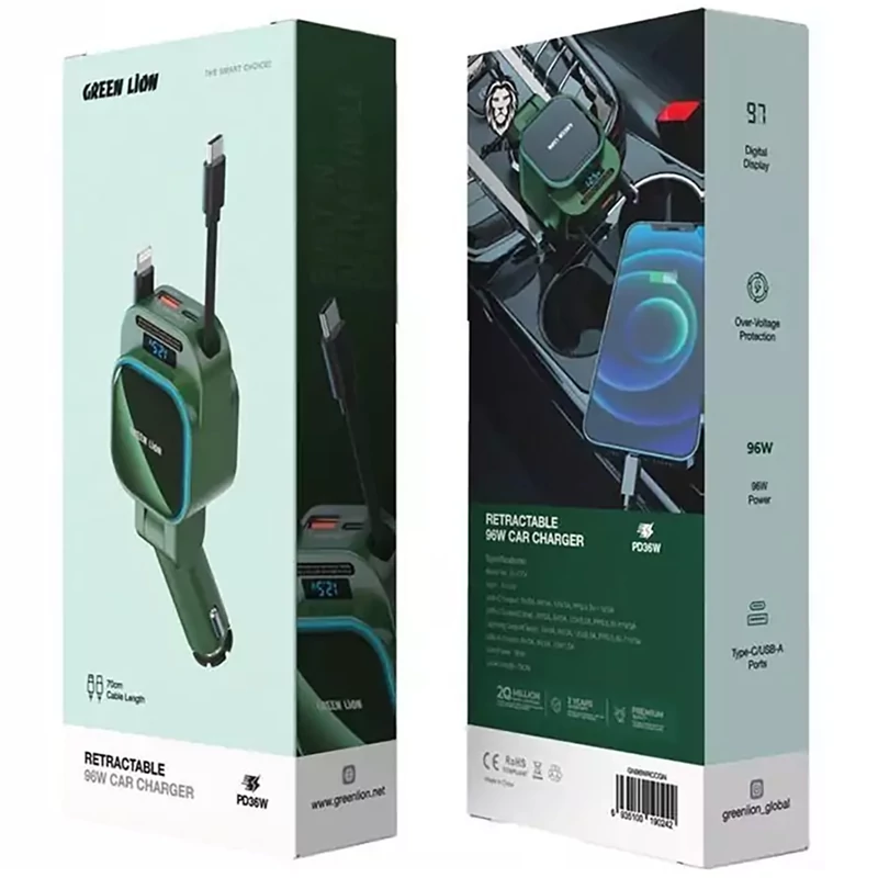 شارژر فندکی فست شارژ 96 وات گرین لاین با داشتن دو درگاه خروجی یو اس بی و تایپ سی و دو کابل شارژر تایپ سی و لایتنینگ داخلی امکان شارژ همزمان 4 دستگاه را با حداکثر توان خروجی 96 وات برایتان فراهم میکند.