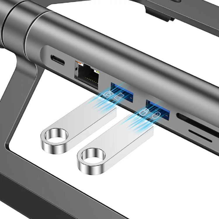 استند آداپتور تایپسی چندکاره ویوو، 8 پورت متنوع و کاربردی را برای لپتاپ به ارمغان می آورد. پورتهایی نظیر دو عدد پورت USB3.0، یک پورت شارژ سریع Type-C PD، یک پورت Type-C جهت اتصال هاب به لپ تاپ، یک عدد پورت HDMI، یک عدد پورت LAN RJ45، یک شیار کارت حافظه SD و یک عدد شیار TF روی هاب آداپتور ویوو قرار دارند.