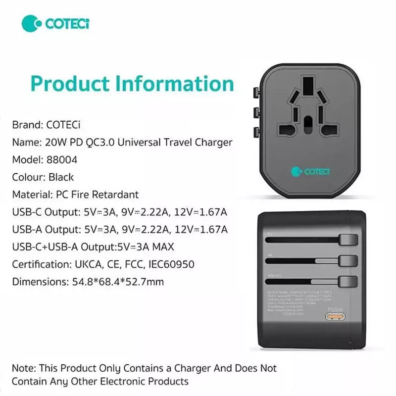 تبدیل پریز برق چندکاره و شارژر دیواری مسافرتی کوتتسی 88004