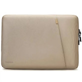 این مدل در سایز کوچک برای لپتاپهای 14 اینچی طراحی شده و ابعادی معادل 34 × 26 × 3.5 سانتیمتر دارد. وزن سبک آن (حدود 340 گرم) باعث میشود بدون احساس سنگینی، بتوانید آن را در دست بگیرید یا داخل کیف بزرگتری قرار دهید. اگر مدام در رفتوآمد هستید، این ویژگی بسیار کاربردی خواهد بود.