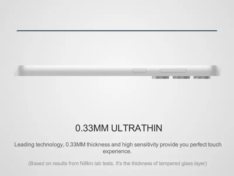 این محافظ صفحه با شیشه مقاوم 9H ساخته شده است که ضدخش و نشکن است؛ تنها 0.33 میلیمتر ضخامت دارد و با استفاده از فناوری برش CNC با دقت ساخته شده که هیچگونه اختلالی در لمس صفحه نمایش ایجاد نمیکند و تاثیر منفی روی ظاهر گوشی ندارد.