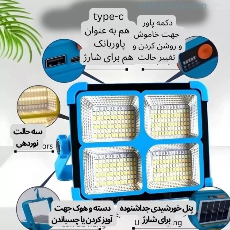 چراغ پروژکتور 100 وات خورشیدی مدل solar lighting YK-918 سایز بزرگ