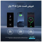 خروجی 5 (نوع C): 5 ولت 3 آمپر، 9 ولت 2.2 آمپر، 12 ولت 1.5 آمپر