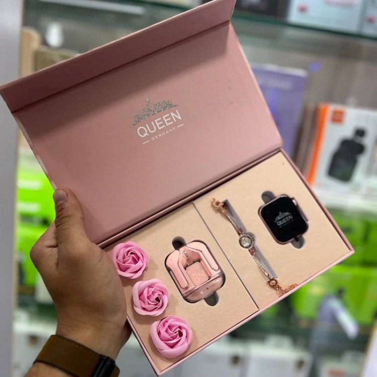 اقلام همراه: ایرپاد, دستبند دخترانه , دو عدد بند صورتی سیلیکونی و شارژر