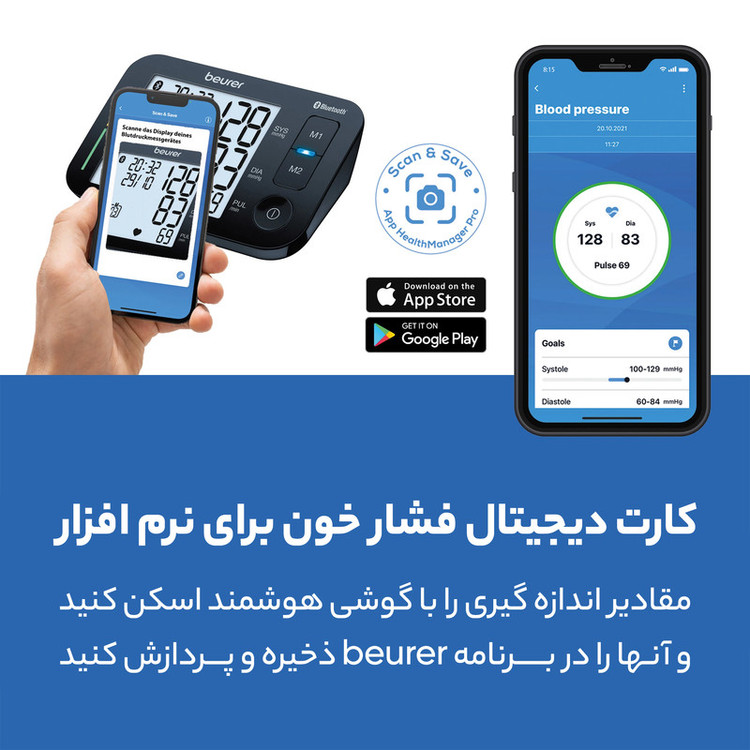 گزارشگیری , تشخیص فشار سیستولیک , تشخیص فشار دیاستولیک , هشدار خطای محاسباتی , نمایش میانگین نتایج , قابلیت خاموشی خودکار , نمایش وضعیت باتری , اتصال از طریق بلوتوث , نمایش تاریخ