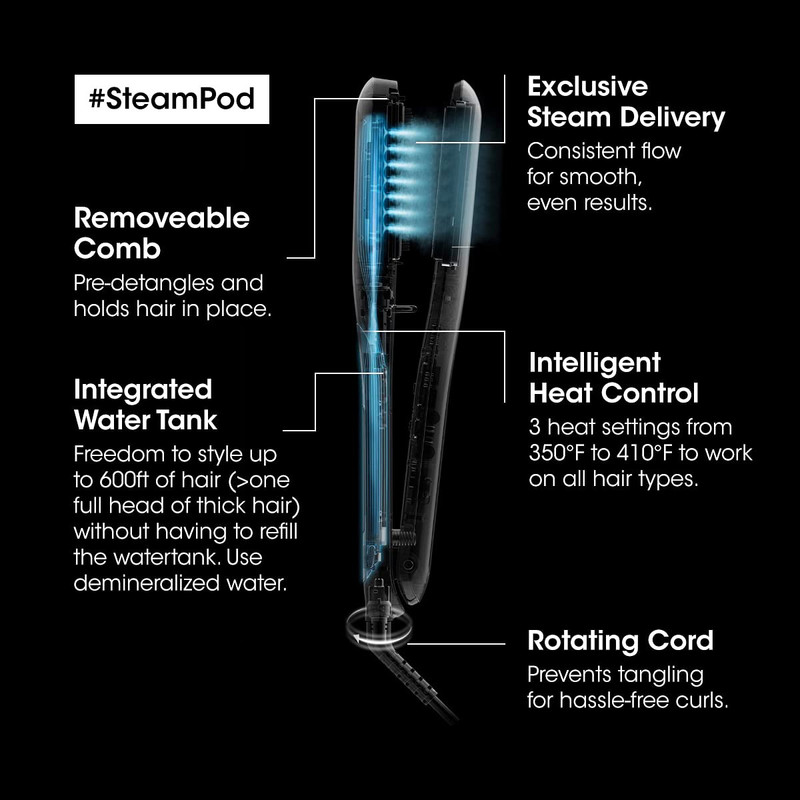 استیم پاد رونتا انقلابی در صنعت اتو مو و ابزار حالت دهی مو است، فناوری استیم مورا سریعتر حالت می دهد و آن را در برابر صدمات حرارتی حفظ میکند, در نتیجه مو های بسیار فر و وز نیز براحتی صاف و لخت می شوند، شانه داخلی آن باعث می شود که مو بصورت یک نواخت روی صحفه سرامیکی قرار گیرد و در صورت نیاز قابل جدا سازی است، فناوری بخار : 0.8 گرم در دقیقه با غلظت ثابت، سه سطح دما از 180 درجه تا 210 درجه سانتی گراد برای موهای نازک تا ضخیم، کابل بلند چرخان، مخزن آب باید با آب مقطر پر شود