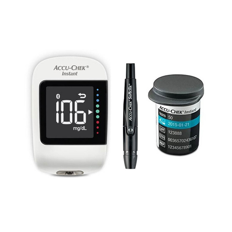دستگاه تست قند خون اکیو چک مدل اینستنت به همراه نوار تست قند خون بسته 50 عددی