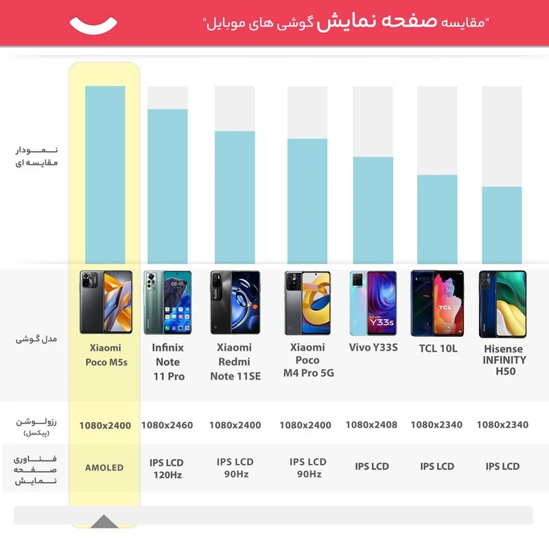 سری Poco گوشیهای هوشمند شیائومی را باید یکی از موفقترین سریهای میانرده این شرکت دانست که با بهره بردن از مشخصات فنی مناسب، عملکرد بسیار خوبی را بهنمایش گذاشتهاند. شیائومی Poco M5s هم یکی از این گوشیهای میانرده است که به نسبت قیمت در نظر گرفته شده، از مشخصات فنی مناسب و قابل قبولی بهره برده است. در نمای روبهرویی این گوشی به صفحهنمایش با ابعاد 6.43 اینچ و رزولوشن 1080×2400 پیکسل از نوع امولد مجهز شده است. صفحهنمایشی که از جمله قابلیتهای قدرتمند آن میتوانیم به نمایش 409 پیکسل در هر اینچ و حداکثر روشنایی 1100 نیت (شمع در متر مربع) اشاره کنیم. برای طراحی صفحهنمایش هم از ناچ اینفینیتی O استفاده شده است که بریدگی دایرهای شکل ناچ در قسمت بالایی و مرکزی صفحهنمایش، سنسور دروبین سلفی با رزولوشن 13 مگاپیکسل را در خود جای داده است. در قسمت پشتی هم یک سنسور دوربین اصلی با رزولوشن 64 مگاپیکسل از نوع عریض (wide) در کنار سنسور 8 مگاپیکسل از نوع فوق عریض (ultrawide) و دو سنسور با رزولوشن 2 مگاپیکسل از نوع سنجش عمق و ماکرو، سنسورهای دوربین چهارگانه این گوشی هوشمند را تشکیل میدهند. در بخش مشخصات سختافزاری هم حضور پردازنده هلیو G95 شرکت مدیاتک سبب شده تا Poco M5s توانای ارائه عملکرد قابل قبولی در اجرای بازیهای محبوب و نرمافزارهای کاربردی داشته باشد. در نهایت میرسیم به باتری که با میزان ظرفیت 5000 میلیآمپرساعتی، توانایی ارائه طول عمر مفید (زمان آماده بهکار) دو روز را در مصرف عادی دارد. پشتیبانی از فناوری شارژ سریع 33 وات هم سبب شده تا امکان شارژ صفر تا 64 درصدی این باتری در مدت زمان 30 دقیقه وجود داشته باشد.