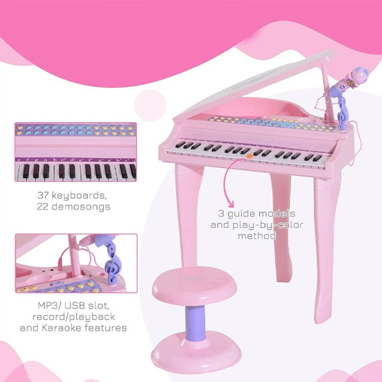 اسباب بازی موزیکال مدل پیانو پایه دار و میکروفون کد 88022