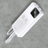 مشخصات-مشخصات فنی: super fast charging / ظرفیت ۳۰ هزار میلی آمپر / دارای چیپست هوشمند که قادر است از باتری گوشی شما در برابر نوسانات و اتصالات کوتاه محافظت کند به گونهای که شدت جریان خروجی از پاوربانک را با شدت جریان ورودی گوشی شما یکسان میکند تا هیچ گونه آسیبی به باتری گوشی شما وارد نشود/ شارژ 4 دستگاه همزمان / صفحه نمایش / مقاوم در برابر ضربه و آتش / دارای تمام پروتکل های ایمنی و استاندارد روز جهان/ دارای 2 کابل چسبیده لایتنینگ و تایپ سی