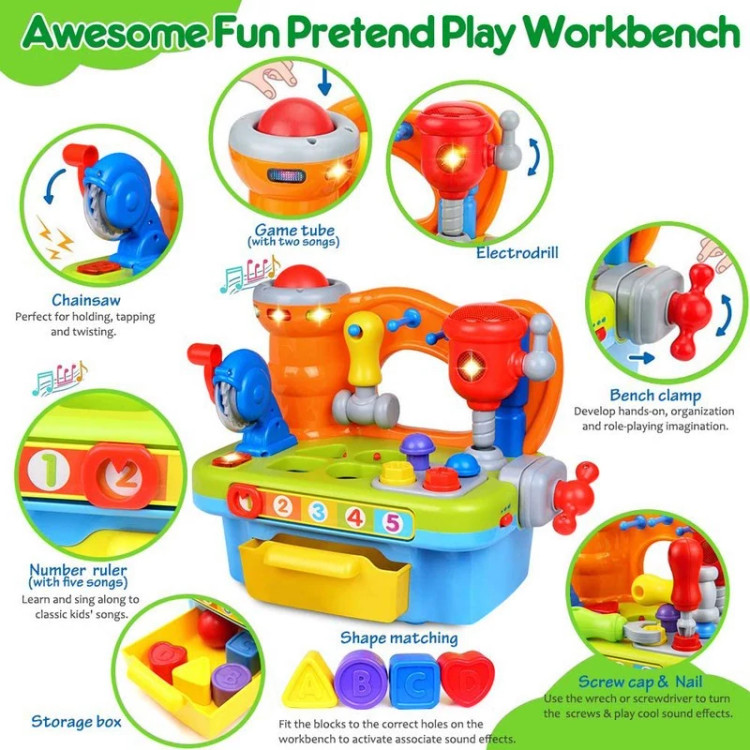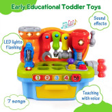 کودک می تواند اشکال را در جای خود قرار دهد و پیچ ها را با ابزار مناسب سفت کند.