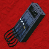 این پاور بانک 40 هزار با قابلیت شارژ خورشیدی و 4 کابل چسبیده و 4 درگاه دیگر با کیفیت ترین پاوربانک مجهز به انواع پروتکلهای شارژ ایمن است.که می توانید چند دستگاه را به صورت همزمان شارژ کنید.این پاور از استانداردهای روز دنیا بهره میبرند.از مزایای این پاوربانک داشتن 4 کابل همراه چسبیده می باشد که شما را از همراه داشتن کابل اضافی بی نیاز می کند. این پاور بانک مجهز به یک چیپست هوشمند میباشد که قادر است از باتری گوشی شما در برابر نوسانات و اتصالات کوتاه محافظت کند به گونهای که شدت جریان خروجی از پاوربانک را با شدت جریان ورودی گوشی شما یکسان میکند تا هیچ گونه آسیبی به باتری گوشی شما وارد نشود بدنه پاوربانک از + ABS با کیفیت بوده که از مقاومت بالایی در برابر ضربه و حرارت دارد. این پاور درای تمامی پروتکل های ایمنی روز دنیا است و تاییدیه اتحادیه اروپا را نیز دارد.برای بازدهی حداکثری از سرعت از کابل با سرعت بالا که توانایی انتقال جریان با سرعت بالا را دارد نیز استفاده کنید.این پاور دارای چراغ قوه نیز میباشد