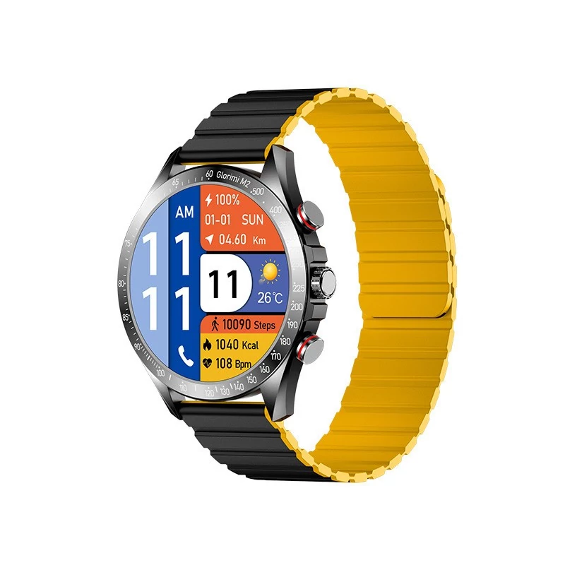 ساعتهای هوشمند امروزه طرفداران بسیاری دارند. این ساعتها علاوه بر کارایی بالا از زیبایی مطلوبی برخوردار هستند و جایگزین مناسبی برای ساعتهای کلاسیک هستند. در بازار تنوع بسیار بالایی از ساعتهای هوشمند دیده میشود. یکی از ساعتهای باکیفیت موجود در بازار ساعت هوشمند گلوریمی مدل M2 است. این مدل با 59 گرم وزن و بند سیلیکونی مگنتی روانه بازار شده است. نمایشگر این ساعت هوشمند 1.43 اینچ واز نوع Ultra-Clear AMOLED است. رزولوشن صفحهنمایش 466x466 پیکسل است و تصویر واضح و شفافی را به نمایش میگذارد. این محصول برند گلوریمی با اکثر گوشیهای موبایل سازگار است. این ساعت دارای حسگرهای متنوعی است که باعث میشود بتوانید فعالیتهای روزانهی خود را بهراحتی اندازهگیری کنید. از جمله این امکانات میتوان از قابلیت تماس بلوتوثی، سنجش ضربان قلب، نمایش نوتیفیکیشنها و پیامک، انواع سنسورهای سلامتی و ورزشی، سنجش فشار خون، قابلیت کنترل موزیک و پایش خواب اشاره کرد.