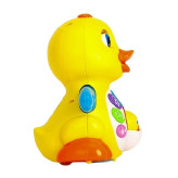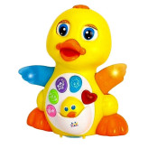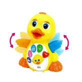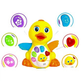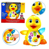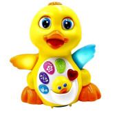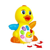 اردک زرد رقصنده هولي تويز، یک اسباب بازی موزیکال است که برای کودکان بالای 18 ماه طراحی شده است و در ساخت این اسباب بازی از چراغهای رنگی و کلیدهای متعدد استفاده شده که عملکردهای مختلفی دارند.اردک زرد رقصنده هولي تويز، دارای کلیدهای مختلف است که عملکردهای گوناگونی از خود نشان میدهند. بروی بالهای اردک چراغهای بسیار جذابی تعبیه شده است و این اردک را برای کودک بسیار خواستنی میکند. از طرفی این بالها متحرک بوده و قابلیت حرکت دارند. این محصول به گونهای طراحی شده است که حین حرکت در صورت برخورد با موانع مسیر جدیدی را برای حرکت خود انتخاب میکند و دهان و چشمان ارک نیز باز و بسته میشوند.