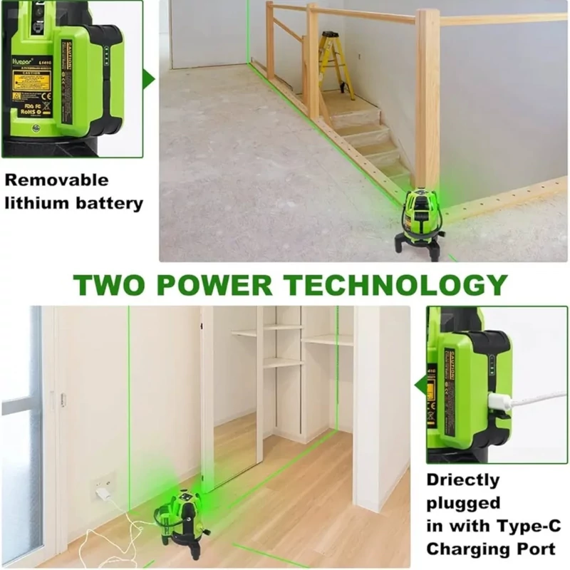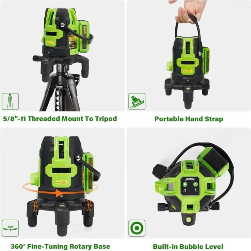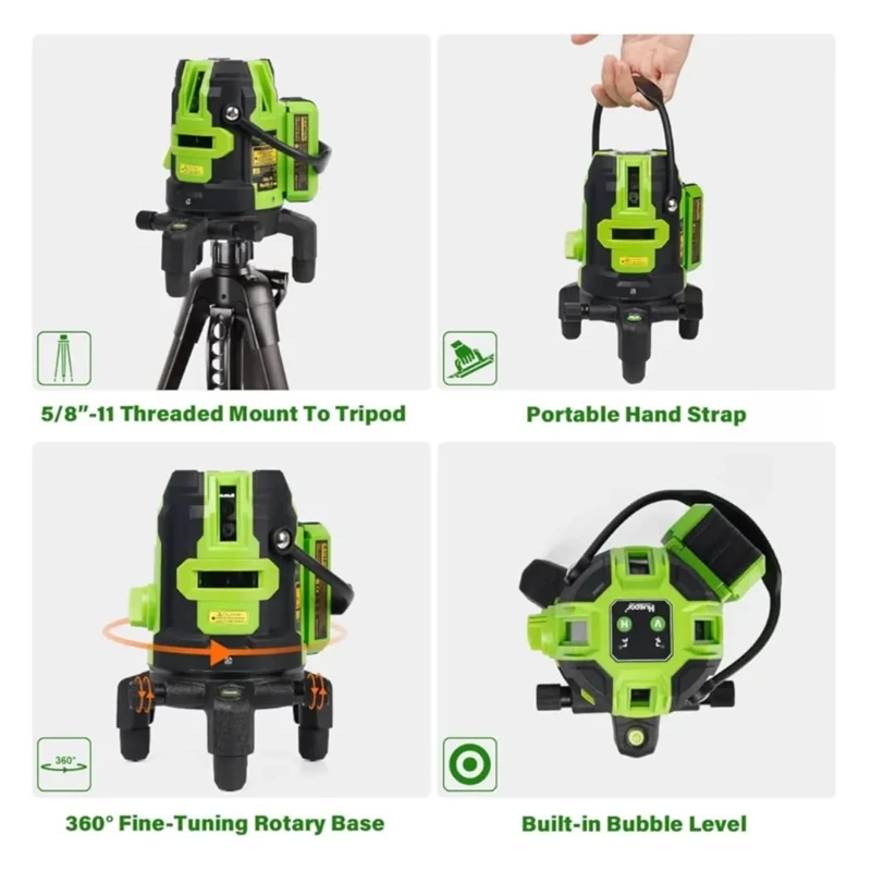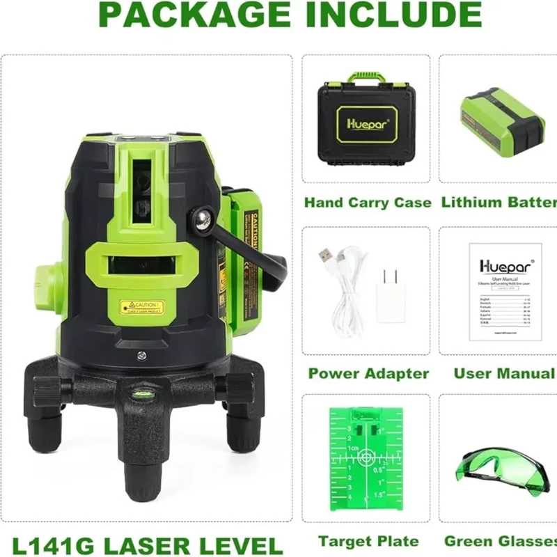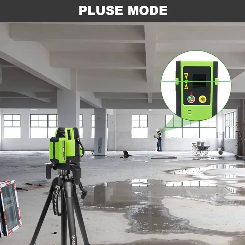 【لیزر سبز روشن و حالت پالس】: ابزار لیزر دارای واحد لیزر سبز روشن است که در برابر تغییرات دما مقاوم و پایدار است و تا 4 برابر روشنتر از پرتوهای قرمز با دقت 1/13 ± اینچ در 33 فوت است. حالت پالس در فضای باز با گیرنده لیزری Huepar LR-6RG/LR-5RG دامنه کار را تا 197 فوت افزایش می دهد. این محصول همچنین دارای عینک سبز رنگ است که باعث بهبود دید خط لیزر می شود