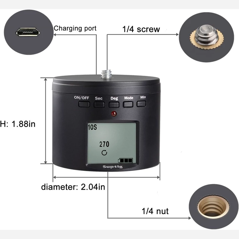 حجم کم و کاربرد عالی: Szie: قطر بالا 1.88 اینچ، قطر 2.04 اینچ. اتصالات سازگار، آداپتور نصب سهپایه برقی Suptig را میتوان برای راحتی شما به یک دسته سلفی 1/4 پیچ / سهپایه کوچک / سهپایه حرفهای متصل کرد و از لوازم جانبی ضروری عکاسی شماست