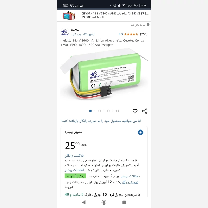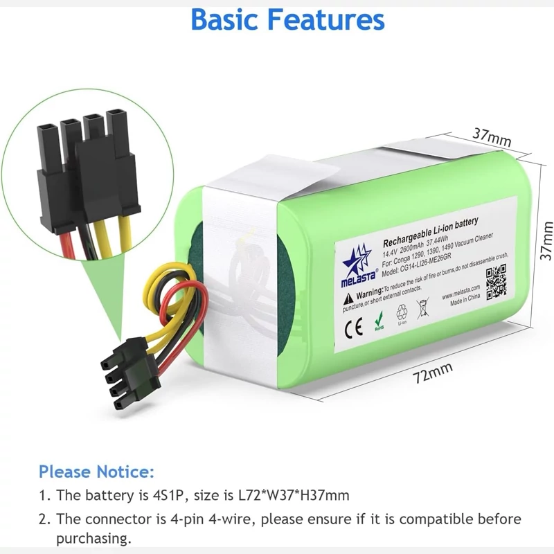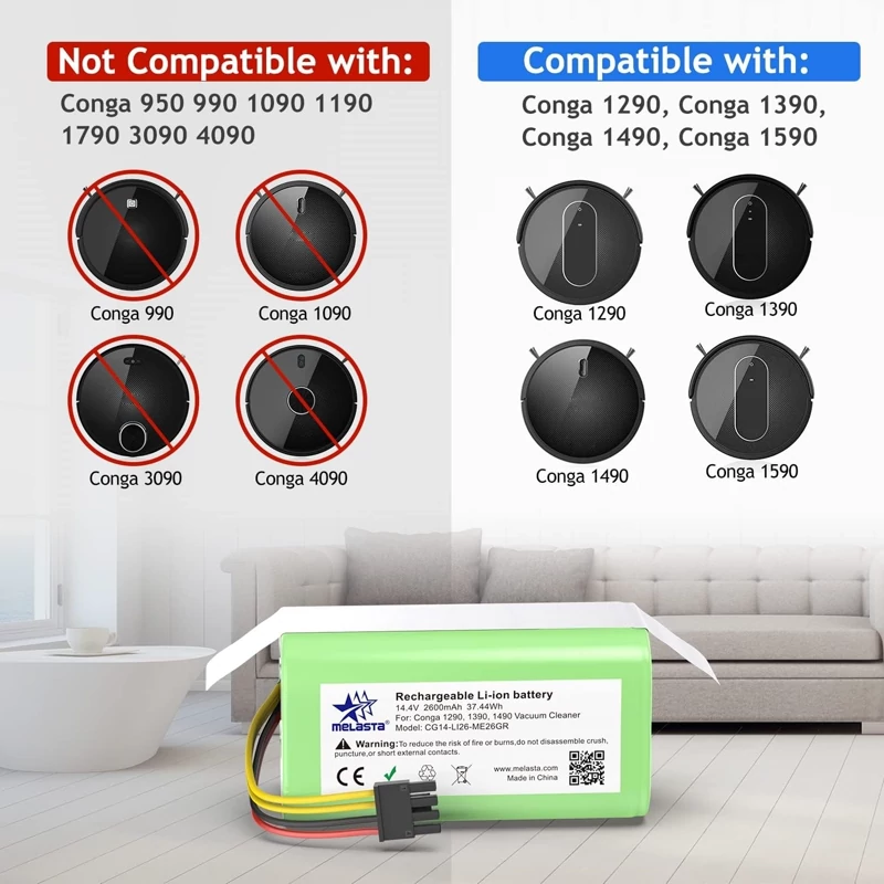 باتری 2600 میلی آمپری جارو رباتیک برند Conga اورجینال امازون المان