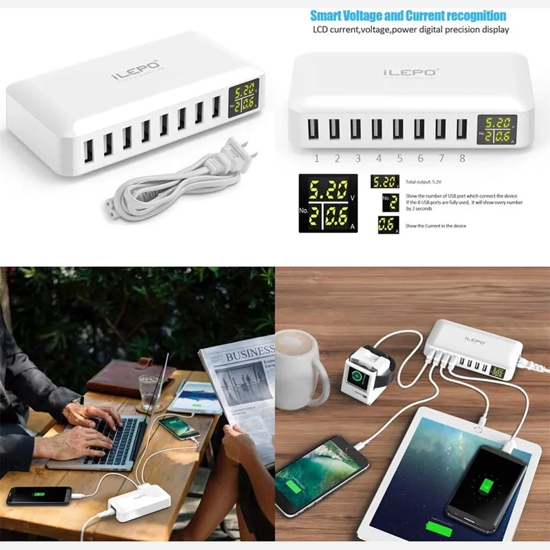 بررسی ایستگاه شارژ 8 پورت USB با نمایشگر LCD مدل i6 توان 40W برند iLepo