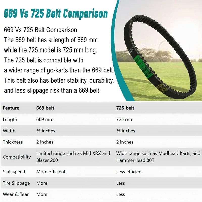 سازگاری: تسمه جایگزین در بسیاری از کیتها و همچنین کارتهای میانرده Trailmaster و Hammerhead استفاده میشود. برخی از این کیتها از تسمه 669 استفاده میکنند