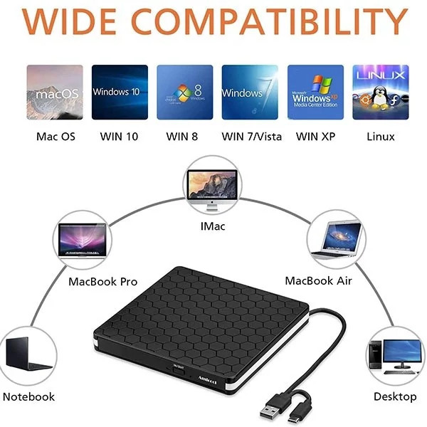 ⭐سازگاری گسترده درایو CD/DVD خارجی برای لپ تاپ کامپیوتر ⭐رومیزی سیستم عامل لینوکس Apple MacBook Pro
