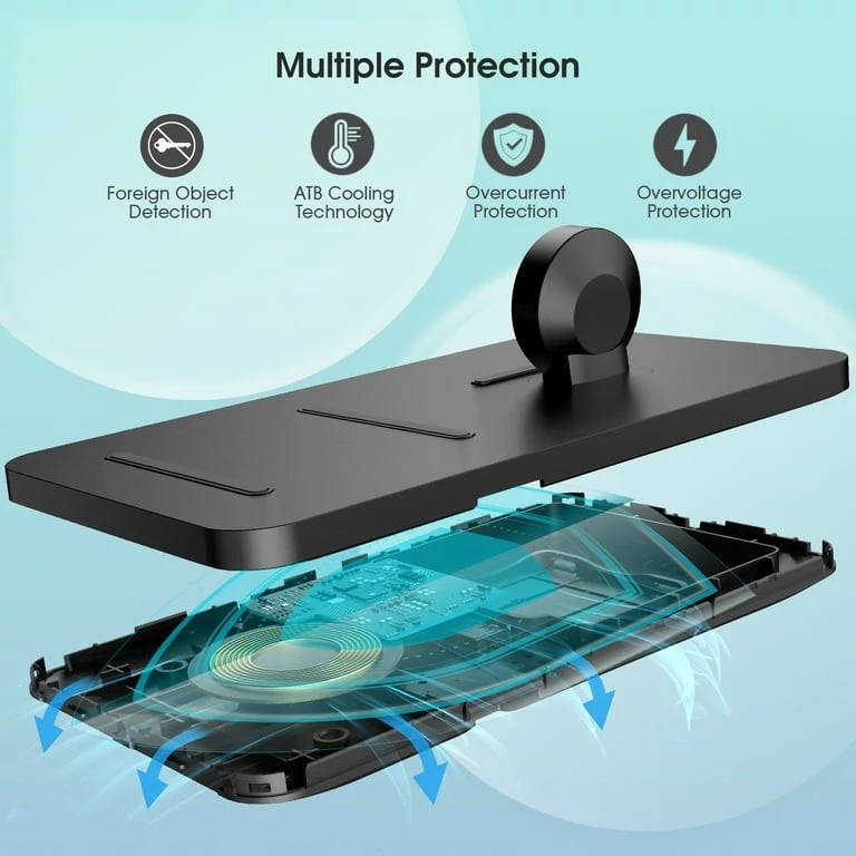 【ایستگاه شارژ بیسیم برای آیفون/ایرپاد + اپل واچ】 : از 3 دستگاه مختلف پشتیبانی میکند!! پد شارژر بیسیم برای شارژ 3 دستگاه، در هزینههای شما صرفهجویی میکند. سازگار با آیفون 13/13 پرو/ 12/ 12 مینی/ 12 پرو/ 12 پرو مکس/ SE 2020/11/11 پرو/ 11 پرو مکس/ X/ XS MAX/ XR/ 8/8 پلاس/ گلکسی S20/ S10 / S9 / S8 / Plus/ S7، ایرپاد 3/2/1، ایرپاد پرو، اپل واچ و تمام دستگاههای دارای قابلیت شارژ سریع QI.