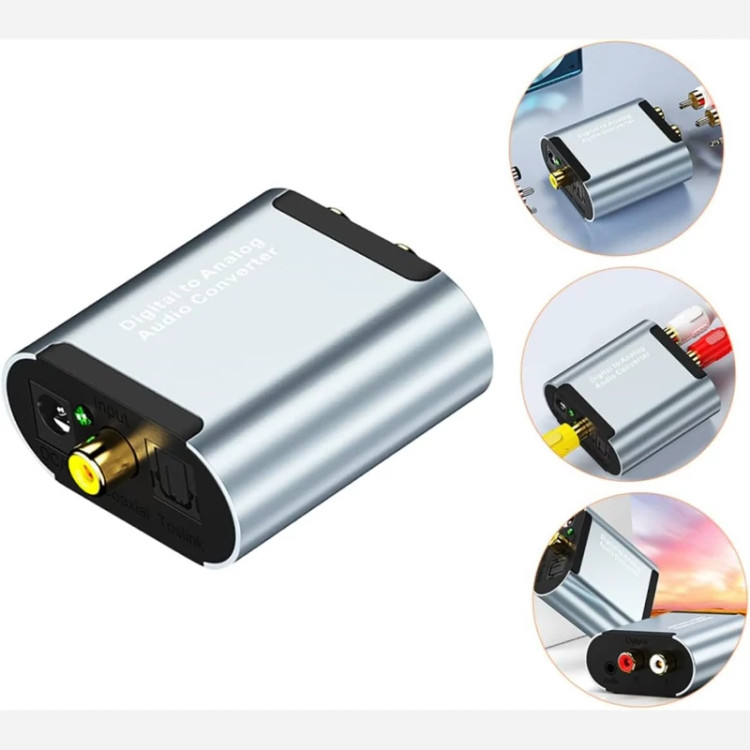 ❌مبدل صدای دیجیتال به آنالوگ مدل جهت تبدیل Coaxial و اپتیکال تلویزیونهای جدید، پلی استیشن، رسیور و DVD به صدای خروجی آنالوگ استریو بوده و جهت اتصال به سینمای خانگی، هدست، اسپیکر، هدفون با ورودی AUX 3.5mm و 2 فیش RCA L/Rمیباشد . با بدنه فلزی، چیپ IC جدید و دارای ورودی صوتی دیجیتال کواکسیال یا نوری و خروجی R/L (کانکتور خروجی صدا) میباشد،❌