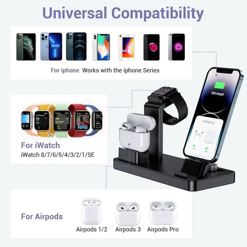 3 in 1 Charging Station for Apple multiple Devices, Charging Stand for iPhone 14/13/12/11/Pro/Max/XS/XR/X/SE/8/7/6/5, AirPods Pro/3/2/1, Apple Watch SE/8/7/6/5/4/3/2