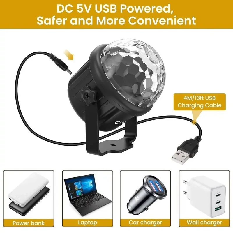 از آنجایی که از USB تغذیه میکند، دستگاهها/پریزهای مختلفی وجود دارد که میتوانید آن را برای برق به آن وصل کنید، مانند کامپیوتر، پاوربانک، شارژر ماشین و غیره. طول کابل 4 متری/13 فوتی طول خوبی را ارائه میکند. ، می توانید چراغ دیسکو را در همه جا قرار دهید.