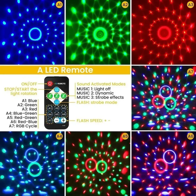 1) 3 حالت موسیقی، چراغ ها با ضربان موسیقی چشمک می زنند و کل مهمانی را سرزنده می کند.