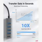 ❌【انتقال داده فوق سریع】 هاب uni USB 3.0 با سرعت انتقال داده تا 5 گیگابیت بر ثانیه، 10 برابر سریعتر از USB 2.0 (480 مگابیت بر ثانیه)، انتقال یک فایل 1 گیگابایتی تنها 6 ثانیه طول میکشد. سازگار با USB 2.0 و USB 1.1. پشتیبانی از اکثر محصولات موجود در بازار. ❌