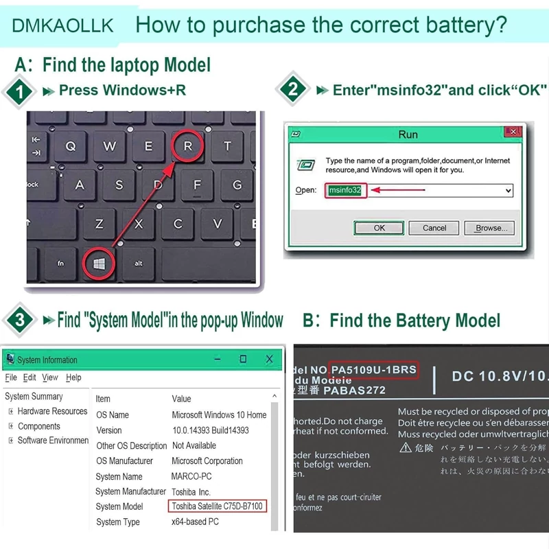 باتری6سلولی توشیبا مدل باتری PA5108U اورجینال 5200MAH اورجینال اروپا