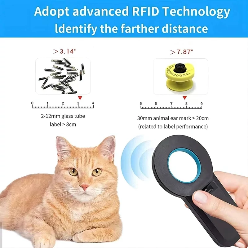 【پشتیبانی از پروتکل چندگانه】خواننده حیوانات از ریزتراشه های ISO11784/ISO11785/FDX-B (15 بیت)/ID64 RFID و EMID پشتیبانی می کند. (ریزتراشه AVID خوانده نمی شود) محدوده خواندن حدود 0 تا 25 سانتی متر یا بیشتر است.