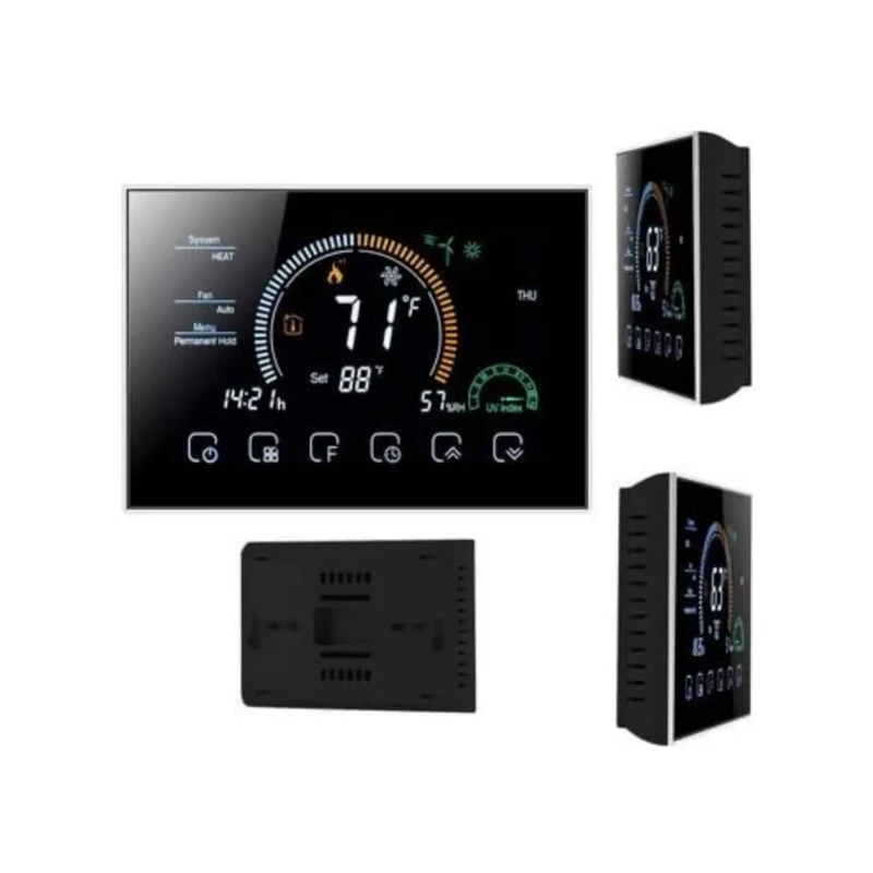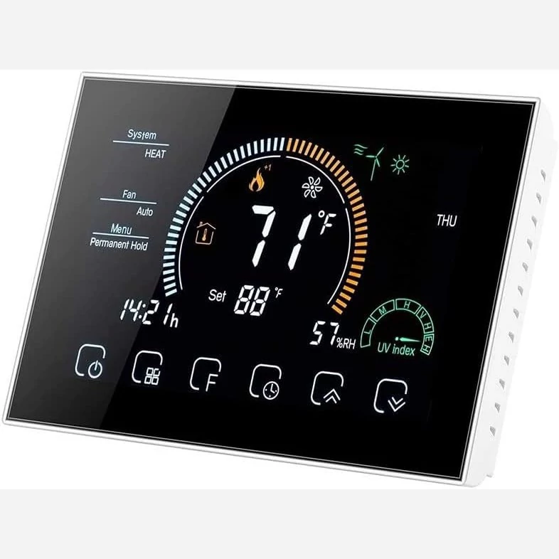 استفاده از این ترموستات الکتریکی که توسط Nassboards عرضه شده است، با وجود ویژگی های پیشرفته ای مانند صفحه کنترل لمسی فنری، کنترل دما با عملکرد برنامه ریزی شش دوره در روز، بسیار آسان است. علاوه بر این، سنسورهای داخلی و خارجی آن می توانند دمای دیگ آب/گاز و/یا کف را با دمای -/+1 درجه سانتیگراد از پیش تعیین شده کنترل کنند.