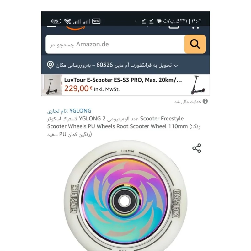 چرخ اسکوتر 120میلی متری رنگین کمانی جنس الومنیومی (پس کرایه)