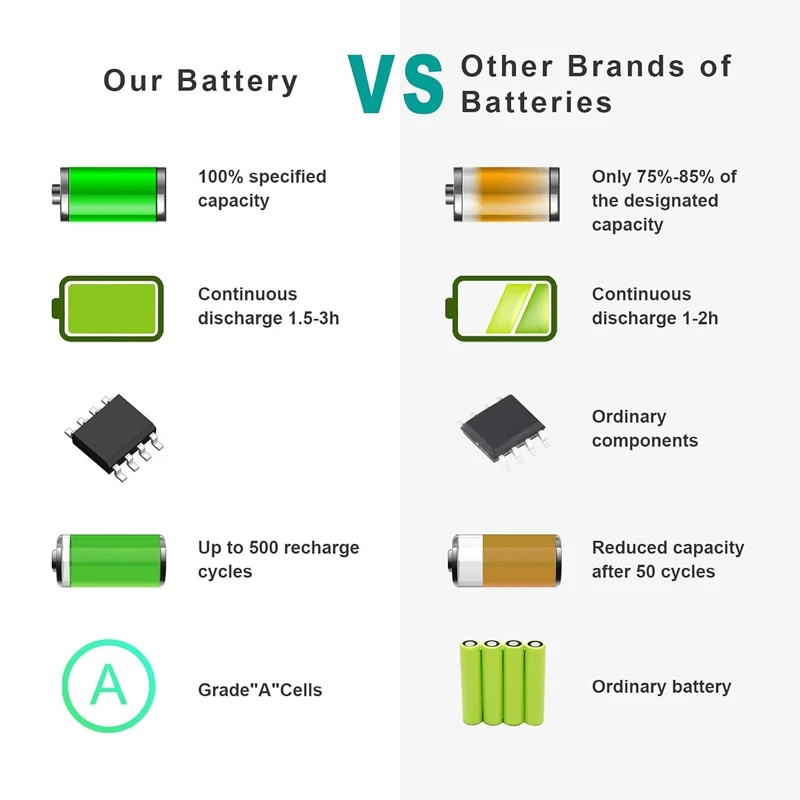 ♣ ، تا 500 چرخه شارژ مجدد در طول عمر باتری، مطابق با استاندارد OEM