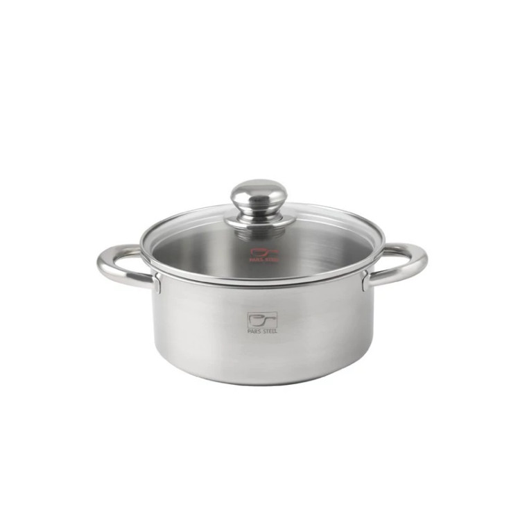 قابلمه پارس استیل مدل 200 سایز 20 با بدنهای از استیل ضدزنگ و ضدخش برای پختن غذایی سالم و لذتبخش بهترین گزینه است. ظروف استیل از قدیم ایام بسیار مورد استقابل و توجه بودهاند. دلیل اهمیت این ظروف دوام طولانی مدت و سازگاری با انواع مواد غذایی است. برای شستن ظروف استیل هیچ نگرانی به خود راه ندهید. فقط کافیست برای مدت کوتاهی مقداری آب گرم در آن ریخته تا کاملا تمیز شود. حتی استفاده از ماشین ظرفشویی برای شستن قابلمه پارس استیل بلامانع است. قابلمه پارس استیل دارای گنجایش 3.3 لیتر بوده و با ارتفاع 10 سانتیمتر برای دو تا چهار نفر کافی خواهد بود. کفی آلومینیوم سهلایه مانع از چسبندگی و سوختن غذا میشود و حرارت بهصورت یکنواخت به تمام ظرف منتقل میشود. محصولات پارس استیل با انواع اجاقگازها سازگار است و هیچ آسیبی به کف ظرف و گاز وارد نخواهد آمد.