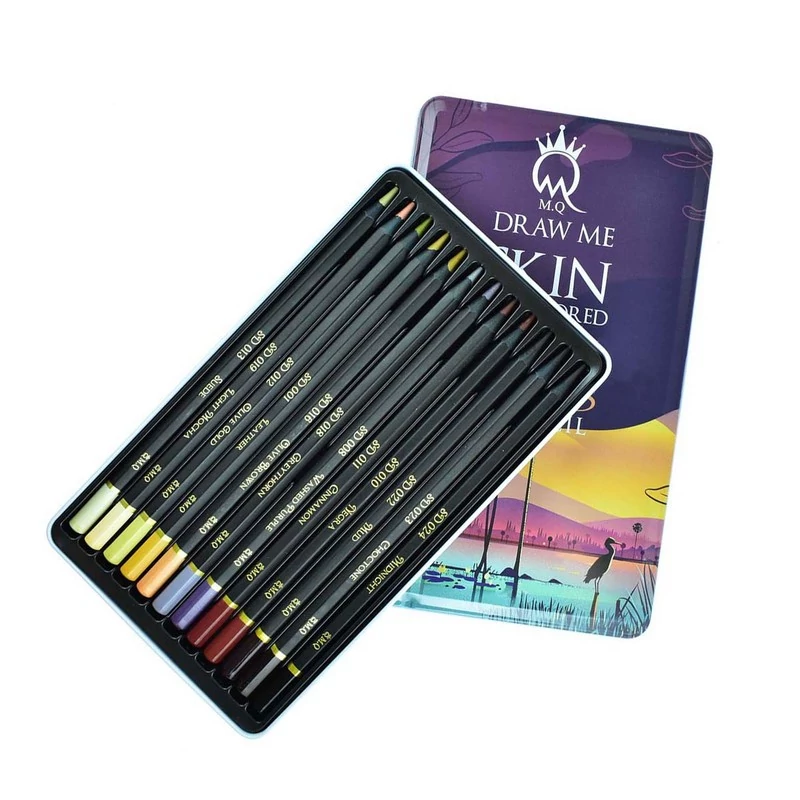 M.Q برندی است که در زمینه تولید محصولات هنری و انواع مداد رنگی فعالیت دارد، مداد رنگی های ام کیو بسیار خوش ساخت هستند، مداد رنگی M.Q مدل SKIN در دو طیف پوست تیره و روشن تولید میشود، جنس بدنه این مداد ها از چوب مرغوب است، طراحی ارگونومیک مداد رنگی SKIN مانع از خستگی انگشتان دست هنگام نقاشی میشود، همچنین فرم شش ضلعی مداد ها از لیز خوردن آن از دست یا روی میز جلوگیری میکند، مغزی و نوک مداد رنگی SKIN بسیار نرم و با کیفیت است تا با کمک آن یک اثر هنری خارق العاده خلق کنید، مداد رنگی M.Q مدل SKIN در بسته بندی فلزی با طرح بسیار جذاب عرضه میشود و میتوانید به راحتی آنها را در کیف یا کنار وسایل خود، جابجا کنید بدون اینکه نگران آسیب دیدگی مداد رنگی باشید، این ویژگی ها در کنار کیفیت و قیمت مناسب، M.Q را به یک انتخاب هوشمندانه برای هنرمندان تبدیل کرده است.