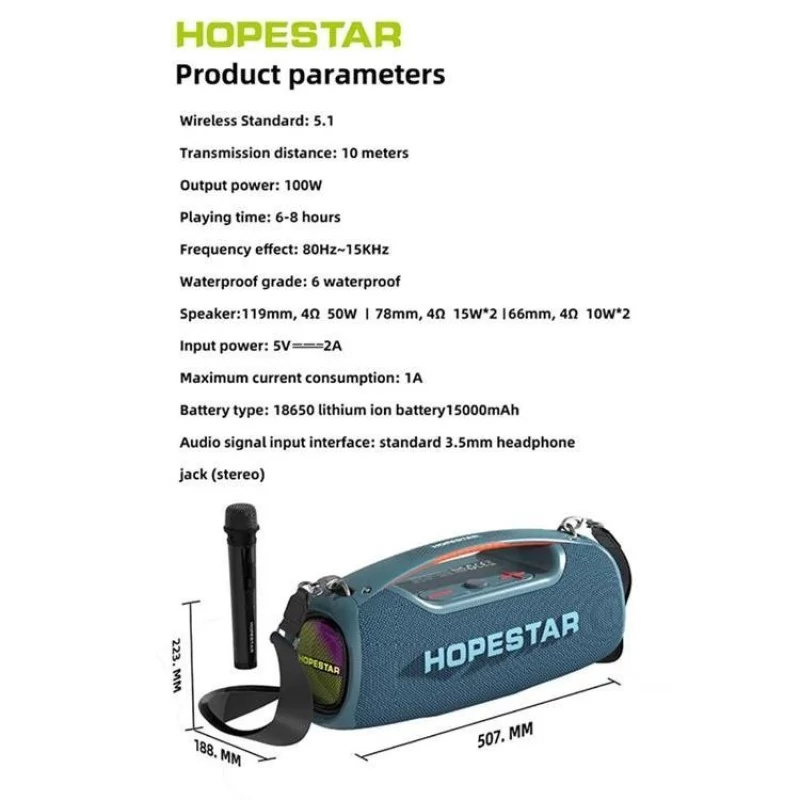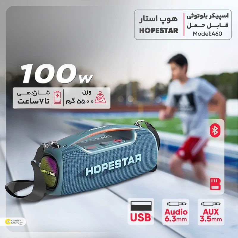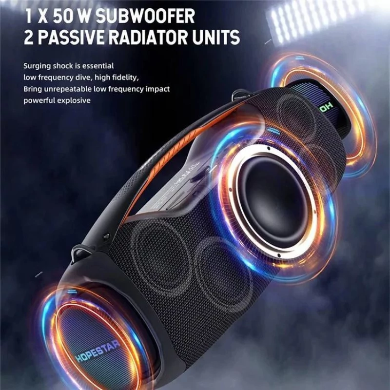 اسپیکر بلوتوثی قابل حمل Hoopstar مدل A60 یک دستگاه صوتی کوچک و قابل حمل با عملکرد بالا است که به وسیلهٔ فناوری بلوتوث، امکان اتصال به دستگاههای مختلف را فراهم میکند. این اسپیکر دارای طراحی زیبا و کم حجم بوده و امکان حمل آسان آن را فراهم میسازد. با کیفیت صدای فوقالعادهای، اسپیکر Hoopstar A60 با توان خروجی مناسب و با کیفیت، تجربهٔ گوش دادن به موسیقی و صدا را به کاربران ارائه میدهد. این دستگاه دارای باتری قوی خواهد بود که اجازهٔ پخش مداوم موسیقی را به مدت طولانی میدهد، همچنین دارای ورودیهای مختلفی مانند درگاه USB و ورودی AUX نیز است. اسپیکر Hoopstar A60 دارای قابلیت پاسخگویی به تماسها و کنترل صداها (شامل پخش، مکث، و جلو/عقب کردن) از راه دور است که تجربهٔ استفاده را برای کاربران ساده و راحت میکند. با کیفیت ساخت بالا و قابلیت اتصال به دستگاههای مختلف، اسپیکر بلوتوثی Hoopstar A60 یک انتخاب عالی برای استفاده در محیطهای مختلف و در هر لحظهٔ خاصی از زندگی است.