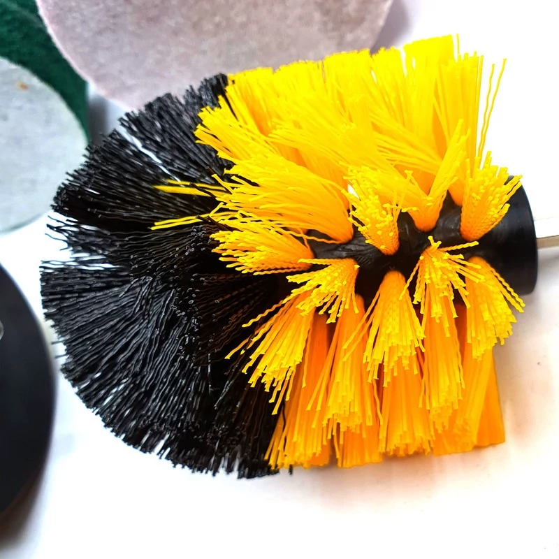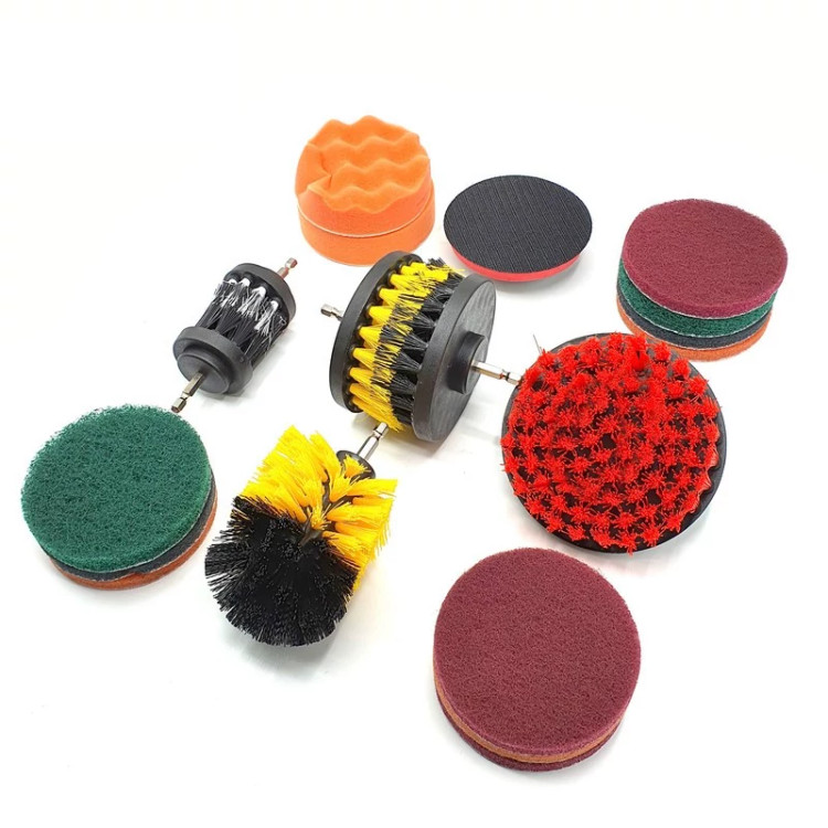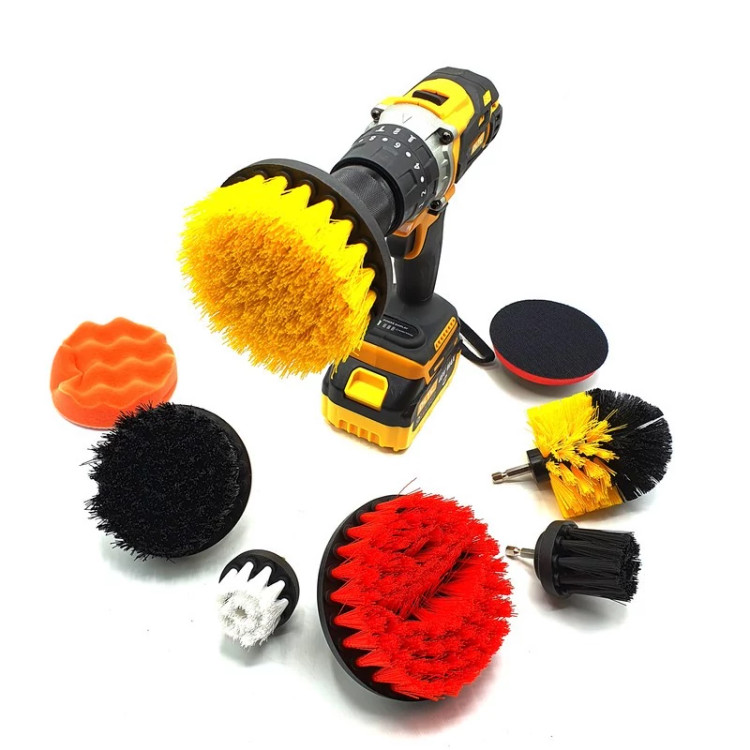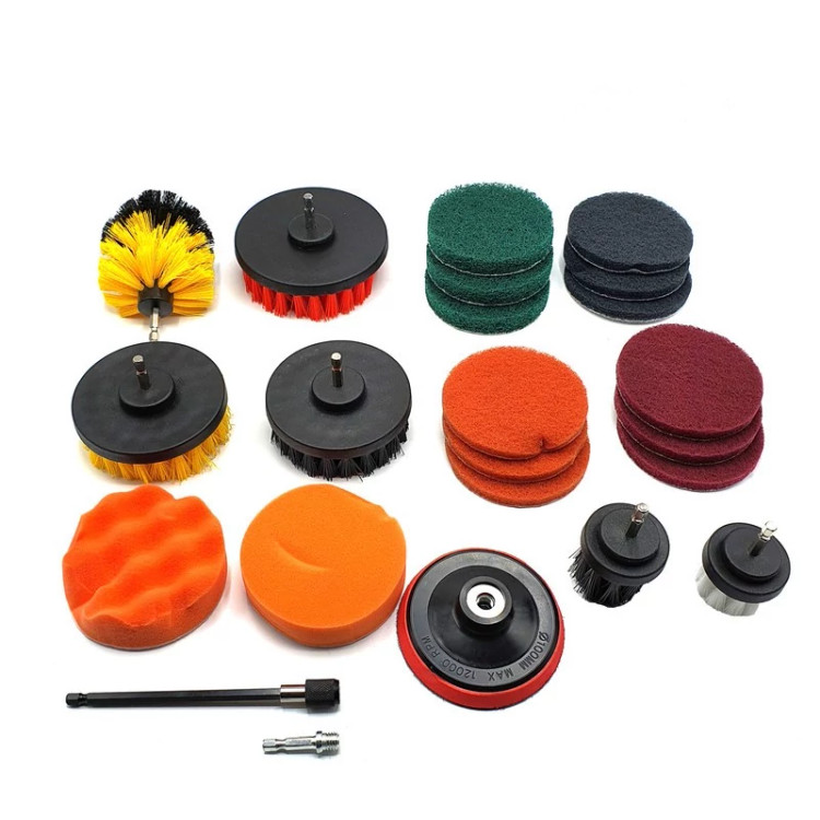 شستوشو با برس سر دریلی بسیار سریعتر و بهتر از فرچه دستی انجام میشود. مجموعه فرچه و پولیش دریلی فوق، محتوی یک عدد برس نیمه نرم با قطر 12 سانتیمتر (تخت) مناسب جهت شستوشوی لاستیک خودرو، مبل و صندلی و ... دو عدد برس نیمه زبر با قطر 10 سانتیمتر (تخت) مناسب جهت سنگ و سرامیک، فرش و ... ؛ 12 عدد انواع پد پولیش چسبدار با زبریهای متفاوت، یک عدد برس با قطر 7 سانتیمتر (توپی) مناسب جهت رینگ خودرو؛ سینک و ... دو عدد برس نیمه نرم به قطر 5 سانتیمتر، دو عدد ابر گرد چسبدار به قطر 10 سانتیمتر جهت چسباندن روی پد پلاستیکی پولیش و استفاده سر دریل، یک عدد پد پولیش چسبدار، یک عدد رابط 5 سانتیمتری سر دریلی پولیش، یک عدد رابط 15 سانتیمتری قفلدار سر دریلی است. این مجموعه بسیار کارا و مقرونبهصرفه برای هر فردی با هر طیف سلیقهای قابل استفاده است و نیاز آن در هر خانهای احساس میشود.