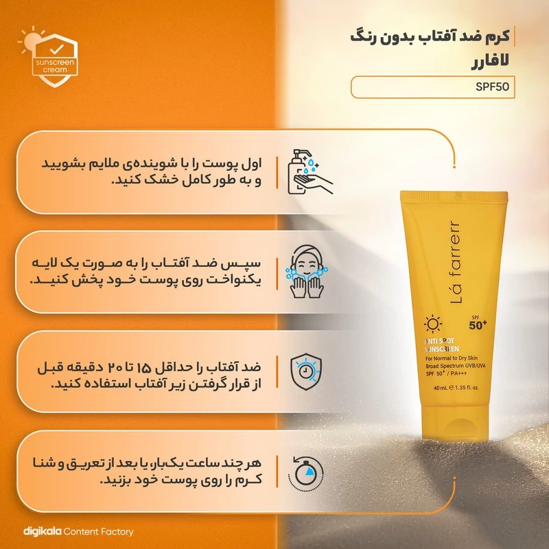 مشخصات-حجم ضد آفتاب: 40 میلیلیتر