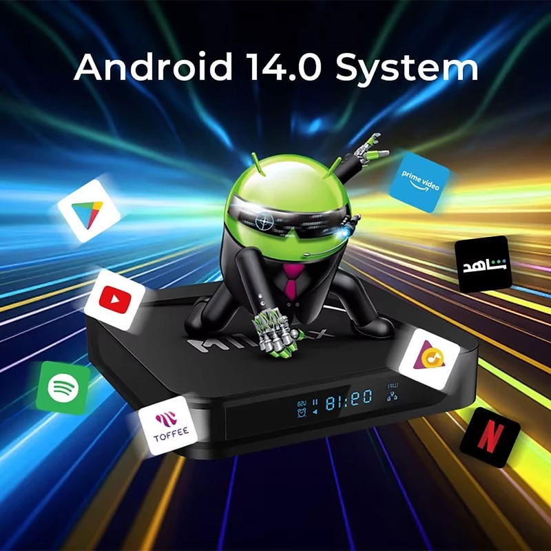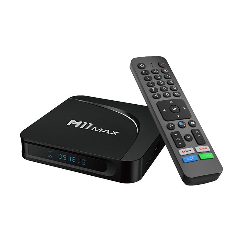 اگر به دنبال اندروید باکس با سخت افزار قوی و سیستم عامل به روز هستید این اندروید باکس بهترین انتخاب برای شماست.اندروید باکس مدل M11 Max با اندروید 14 معرفی گردید.این اندروید باکس دارای حافظه 64گیگ و رم 4 گیگ است .این محصول دارای CPU بسیار قوی چهار هسته Amlogic S905X5M میباشد همچنین دارای GPU مدل G31™ MP2 GPU processor می باشد.با داشتن سیستم عامل اندروید می تواند انواع نرم افزار های اندروید ایرانی مانند نماوا ،فیلیمو ، فیلمنت و.... و خارجی را روی آن نصب کنید.این اندروید باکس دارای بلوتوث ورژن 5 می باشد.همچنین دارای درگاه های USB ، شبکه ،HDMI و AV می باشدودر واقع تمام پورت های ضروری در دسترس شما خواهند بود.طراحی زیبا و سایز مناسب از خصوصیات منحصر به فرد این مدل می باشد.