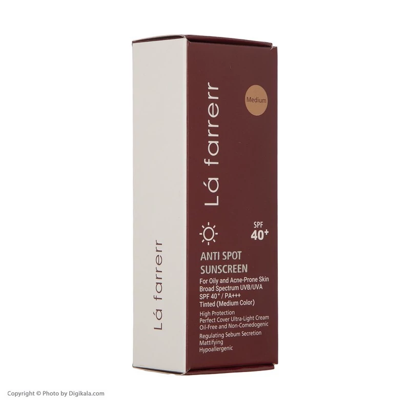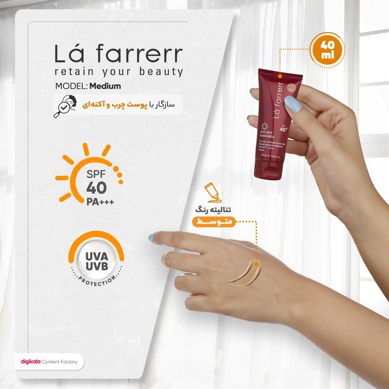 کرم ضدآفتاب و ضدلک رنگی لافارر مدل SPF40-Medium، مناسب پوستهای چرب، حجم 40 میلیلیتر